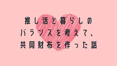 暮らし 推し活と暮らしのバランスを考えて、共同財布を作った話 推し活をきっかけに、お金の使い方と暮らしを見直しました。パートナーとの共同財布を作った理由やルール、残金の使い方を、推し活目線でまとめています。 2026.02.16 暮らし